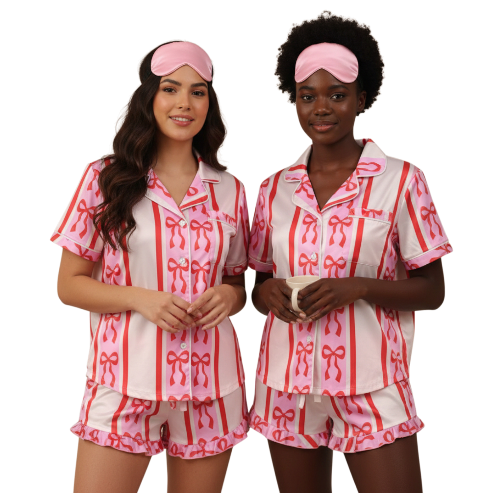 **Cozy Up in Style with Our Festive Bows Pajama Set in Red and Pink!**